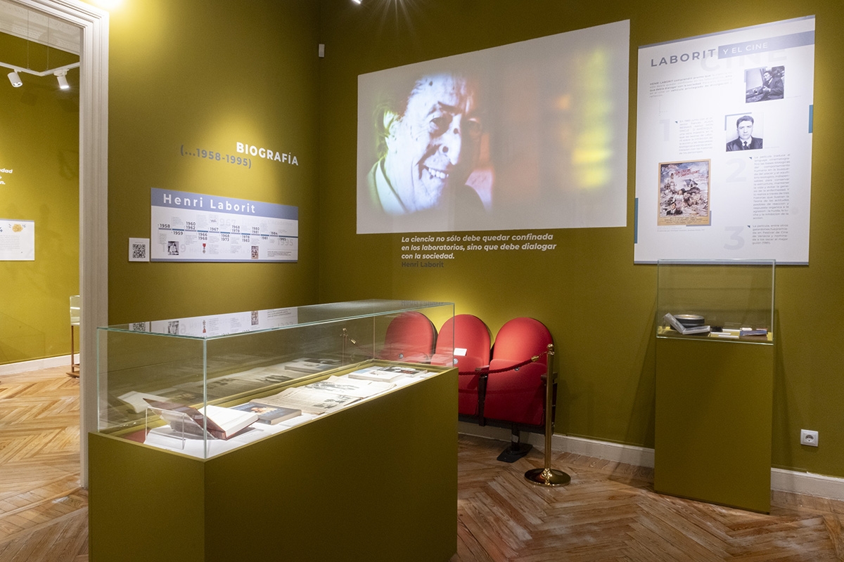 La exposición muestra libros y elementos utilizados a lo largo de toda su trayectoria profesional, así como su lado más divulgativo y su colaboración con la industria cinematográfica. En la película ‘Mi tío de América’, dirigida por Alain Resnais en 1980, Laborit aparece explicando sus teorías científicas y en ella quedó reflejada su ideología al conectar neurobiología, conducta y sociedad.