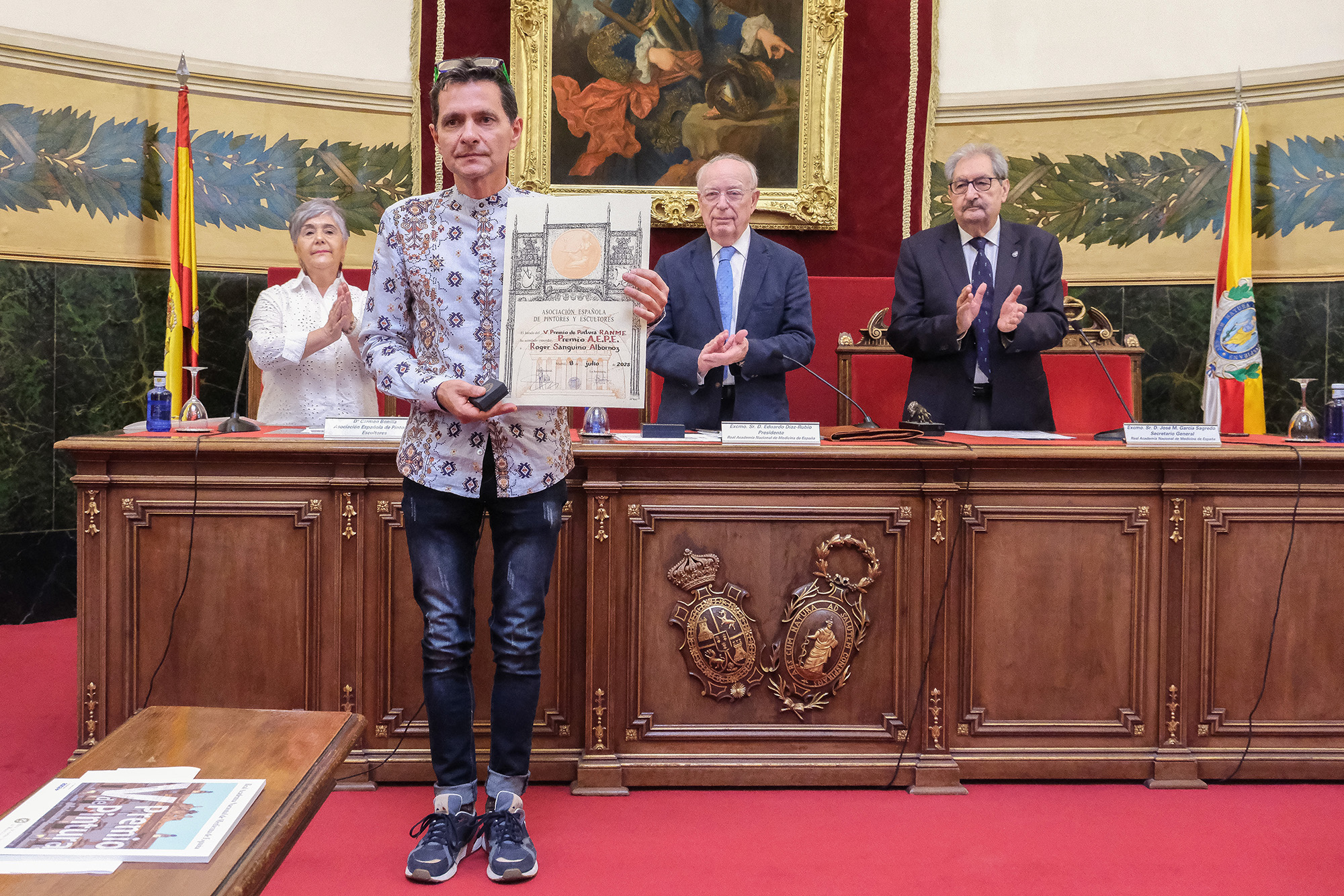 Manuel Rodríguez Domínguez ha sido el ganador del V Premio que recibió la mañana del 8 de julio en el salón de actos de la RANME el correspondiente diploma emitido por la Real Academia Nacional de Medicina de España, junto a la dotación económica. Asimismo, se ha otorgado el Premio Mención Especial de la Asociación Española de Pintores y Escultores (AEPE) a Roger Sanguino Albornoz.