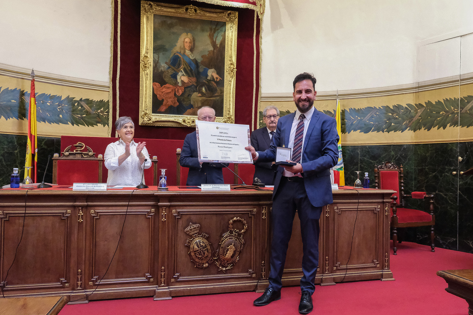El ganador del Premio Mención especial AEPE, D. Roger Sanguino Albornoz, recibe el premio.